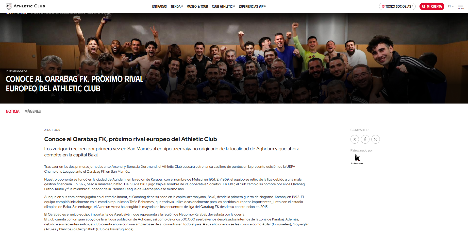 İspaniyanın "Atletik Bilbao" klubu bu gün UEFA Çempionlar Liqasının əsas mərhələsinin III turunda qarşılaşacağı Azərbaycan çempionu "Qarabağ" barədə tanıtma məqaləsi dərc edib.