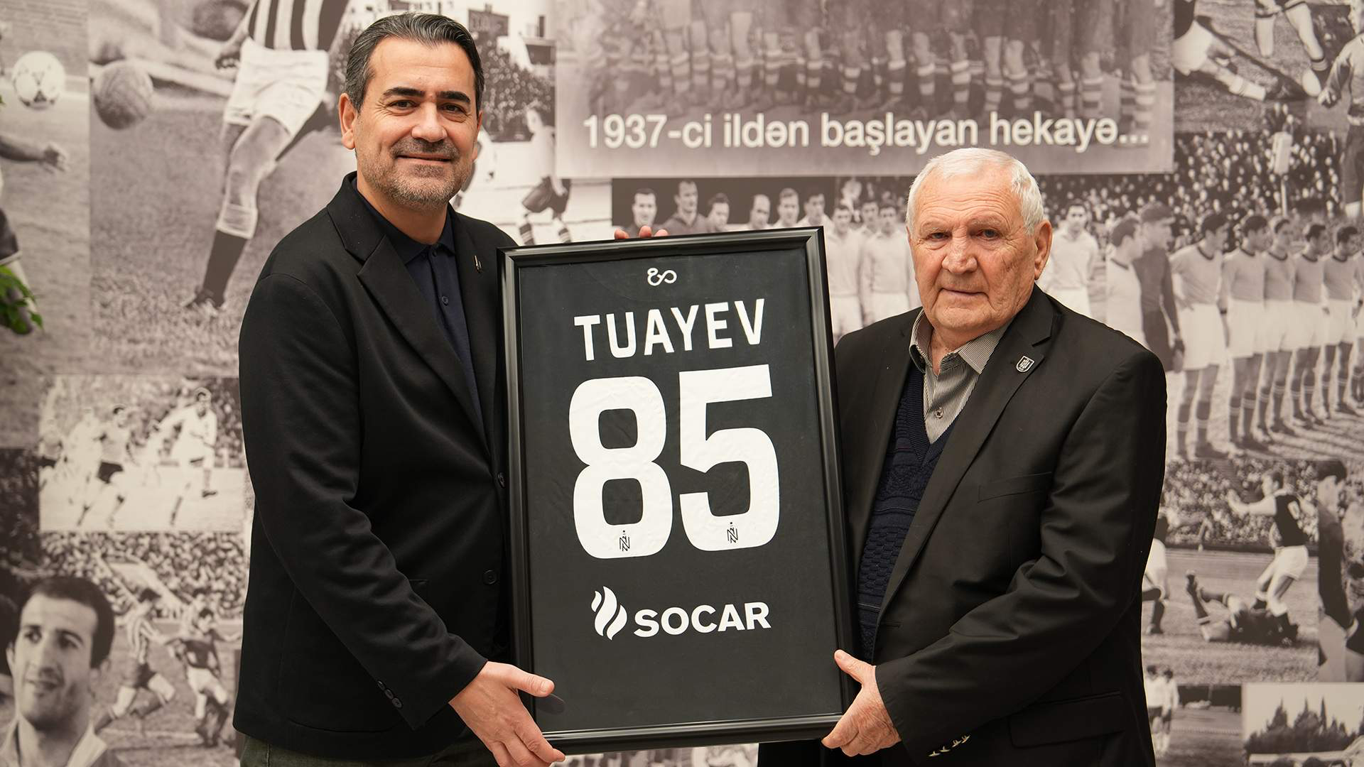Teleqraf klubun rəsmi saytına istinadən xəbər verir ki, “Neftçi” PFK-nın baş icraçı direktoru Cenk Sümer, baş məşqçi Samir Abasov və Media üzrə koordinator Rüstəm Əfsərli ilə görüşən Tuayevə 85 illik yubileyi münasibətilə xatirə hədiyyəsi təqdim edilib.