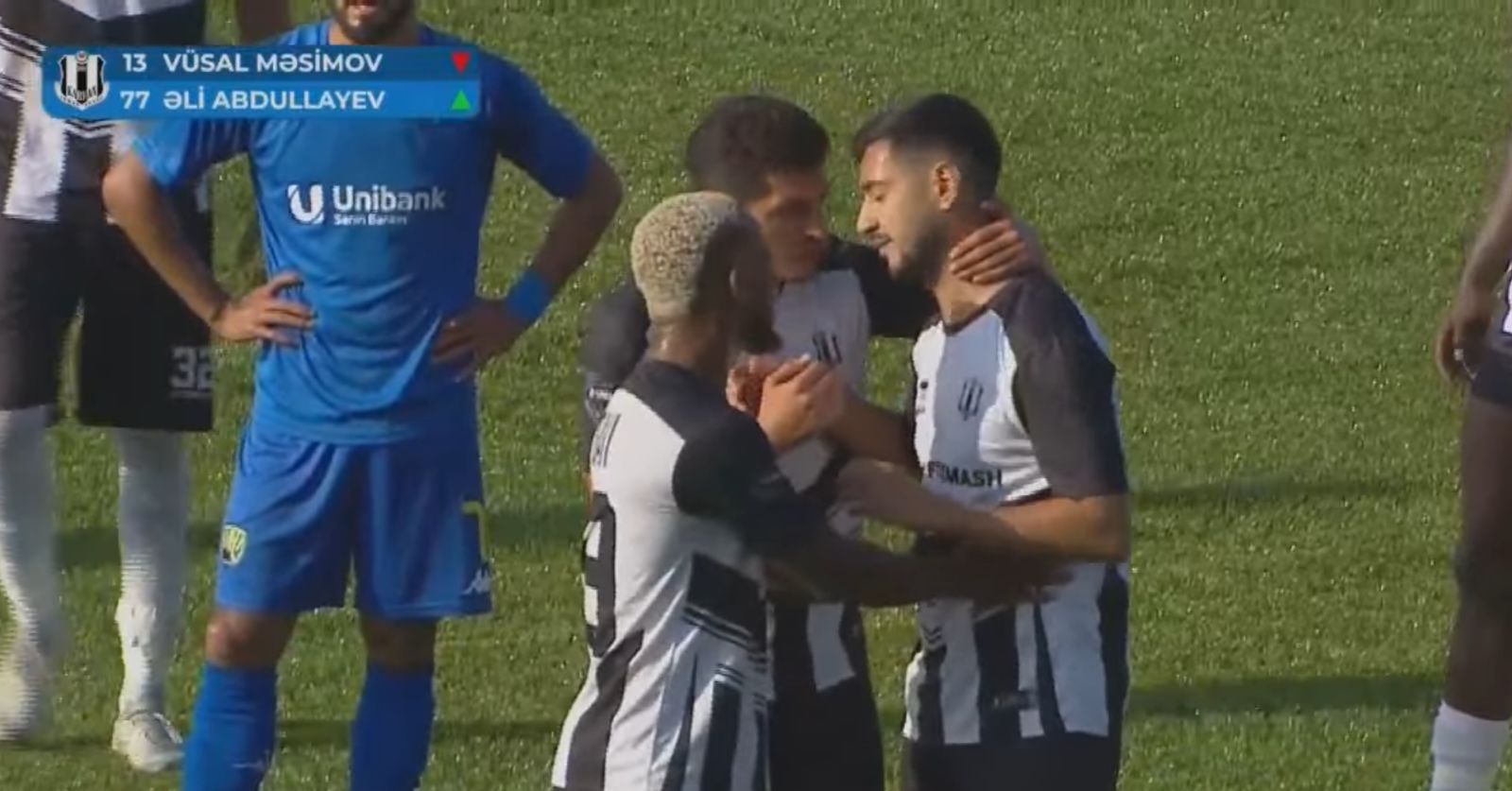 Meydan sahiblərinin baş məşqçisi Azər Həşimov Vüsal Məsimovu Əli Abdullayevlə əvəzləmək istəsə də, futbolçu meydanı tərk etməyib.