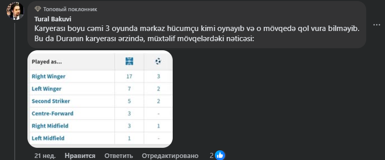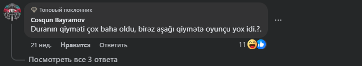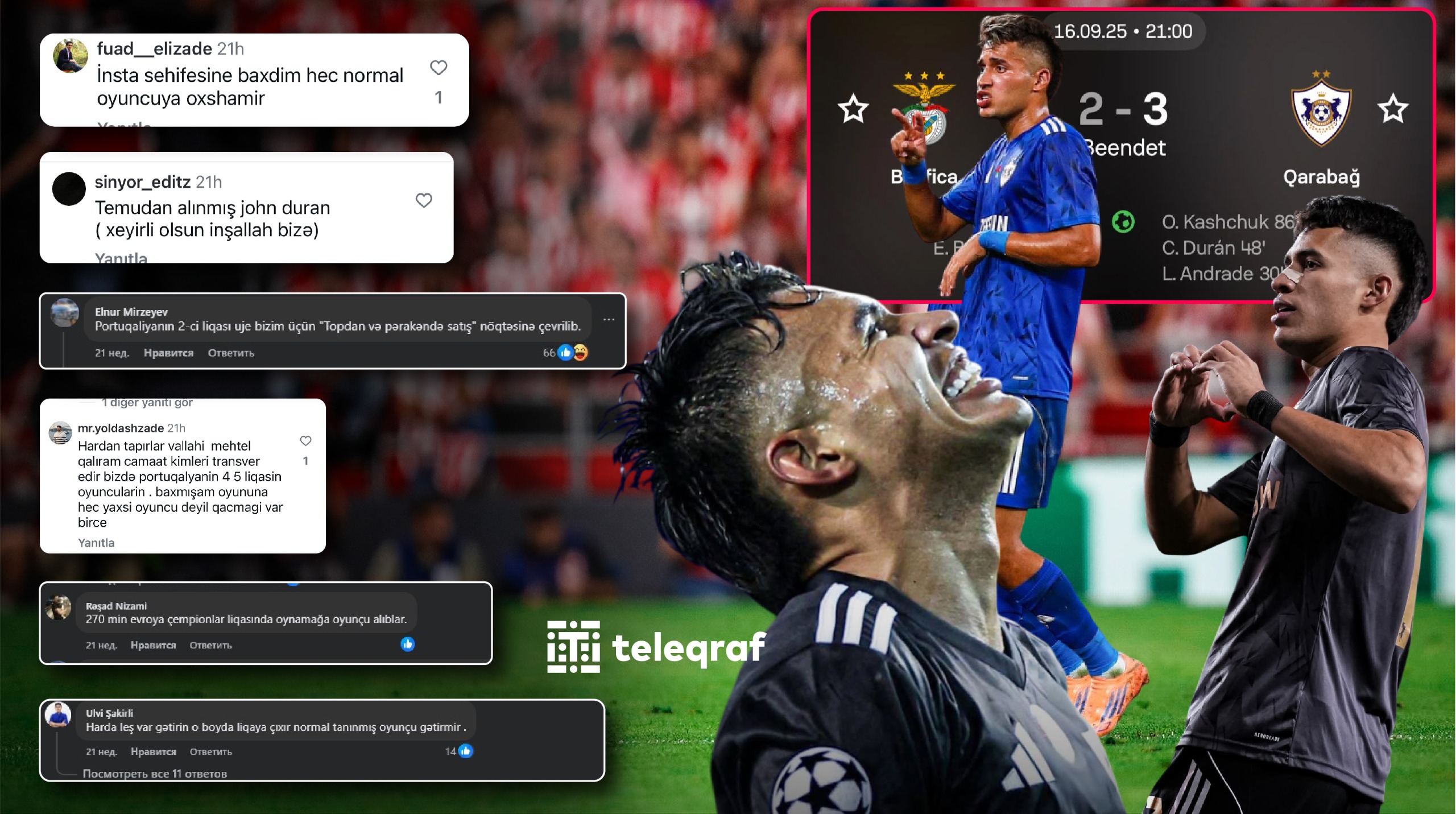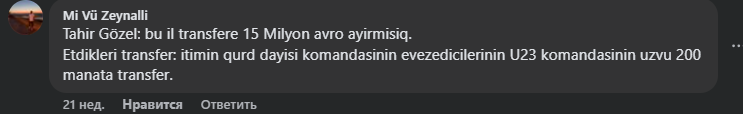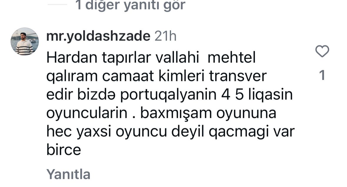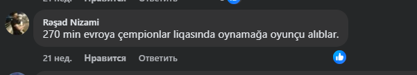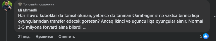 Teleqraf 2025-ci ilin avqustunda "Qarabağ"ın rəsmi sosial şəbəkə hesablarında açıqladığı transfer xəbərindən sonra həmin paylaşıma gələn bəzi şərhləri şərhsiz təqdim edir: