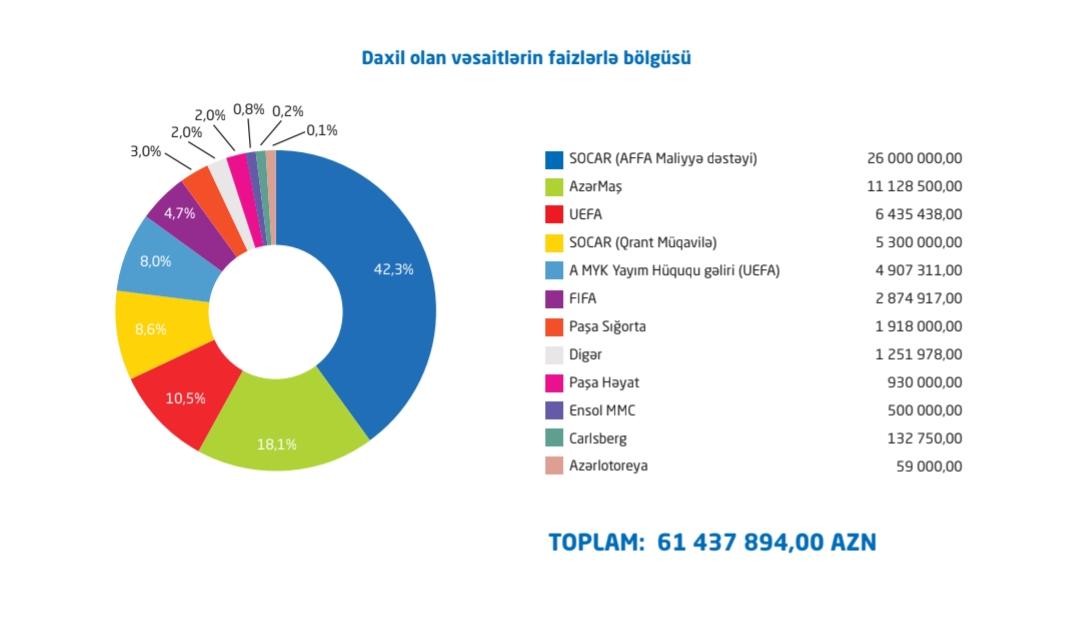AFFA-ya ayrılan vəsaitlər aşağıdakı kimidir: