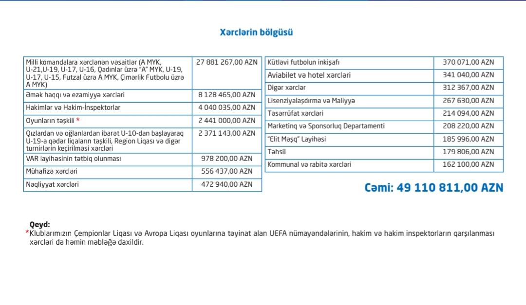 Teleqraf-ın məlumatına görə, bu maliyyənin 28 milyon manata yaxın vəsaiti milli komandalara xərclənib.