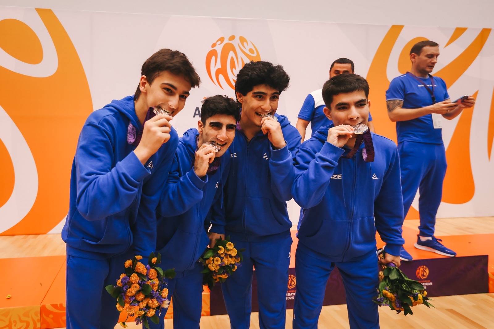 Teleqraf xəbər verir ki, bu gün Azərbaycanın oğlanlardan ibarət batut gimnastikası komandası (170.460 xal) gümüş medal qazanıb.