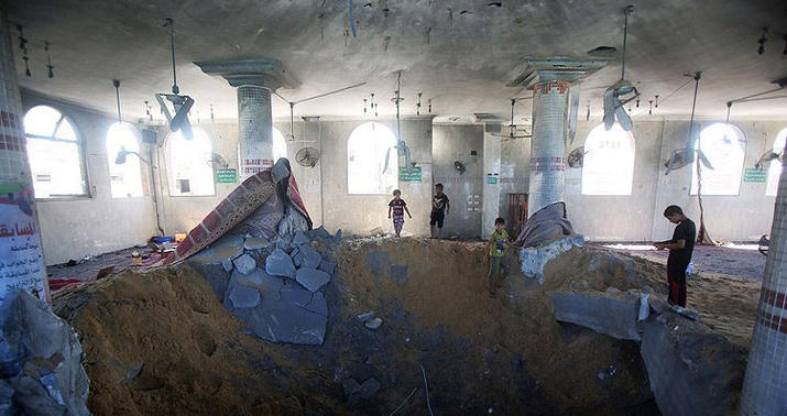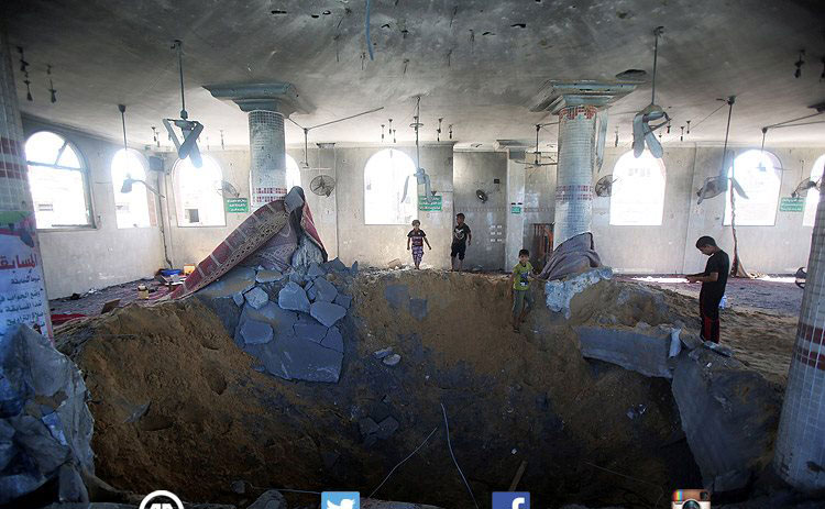 İsrailin hava hücumu nəticəsində Deyrul Belah şəhərindəki Nur məscidi dağılıb.