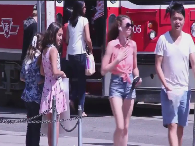 Teleqraf.com xəbər verir ki, onlar üzərilərinə "Terrorçunu qucaqla" yazılan lövhə asaraq insanların onlara münasibətini videoya çəkiblər.