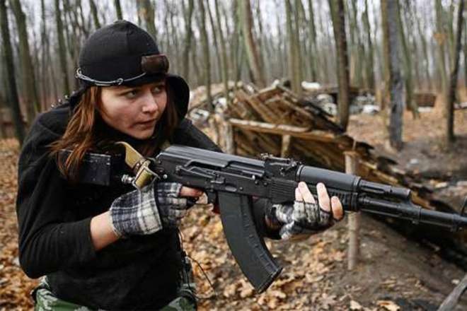 Luqansk vilayətində Sverdlov milisinin binasında kamuflyajda olan silahlı döyüşçülər görüntülənib.