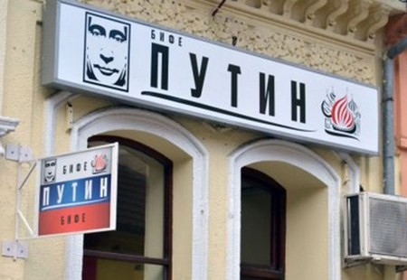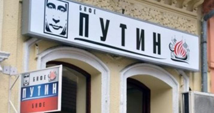 “Putin” adlandırılan kafenin girişinə onun şəkli də vurulub.