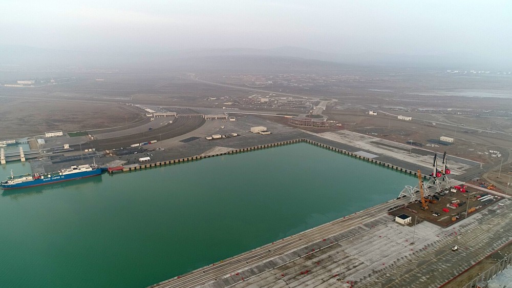 Prezident İlham Əliyevə yeni Ro-Ro terminalı barədə məlumat verilib. Bildirilib ki, ildə 60 minə yaxın TIR və ya 1,8 milyon ton yük qəbul etmək imkanında olan terminal ən müasir texniki tələblərə uyğun tikilib. Terminaldakı birinci körpünün illik yükaşırma qabiliyyəti 800 min ton, ikinci körpününkü isə 1 milyon tondur. Ro-Ro terminalı iki yanalma körpüsündən ibarətdir. Birinci körpünün uzunluğu 222 metr, ikinci körpünün uzunluğu isə 190 metrə yaxındır.