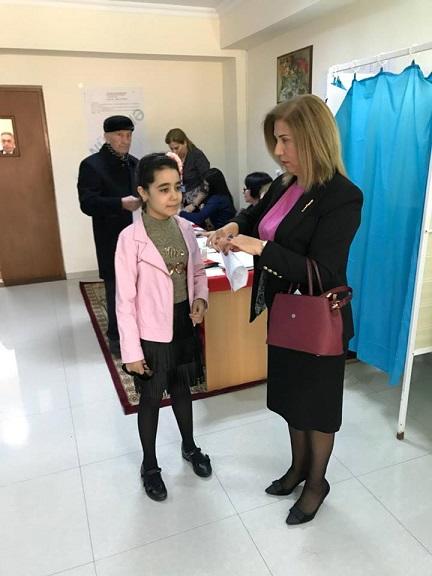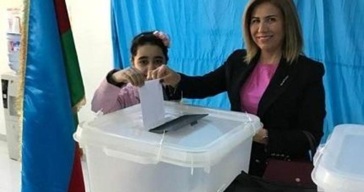 Qızının səsvermə hüququnun olmamasına baxmayaraq, o, anası ilə birlikdə seçkidə iştirak edib.