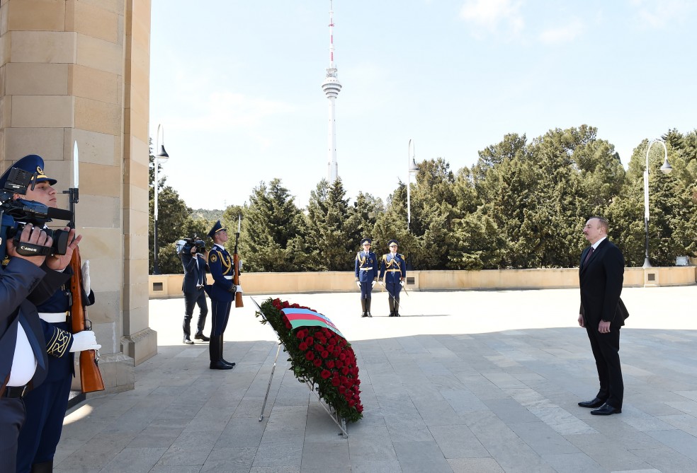 Dövlət başçısı Ulu Öndərin məzarı önünə əklil qoydu, onun ruhu qarşısında baş əyib.