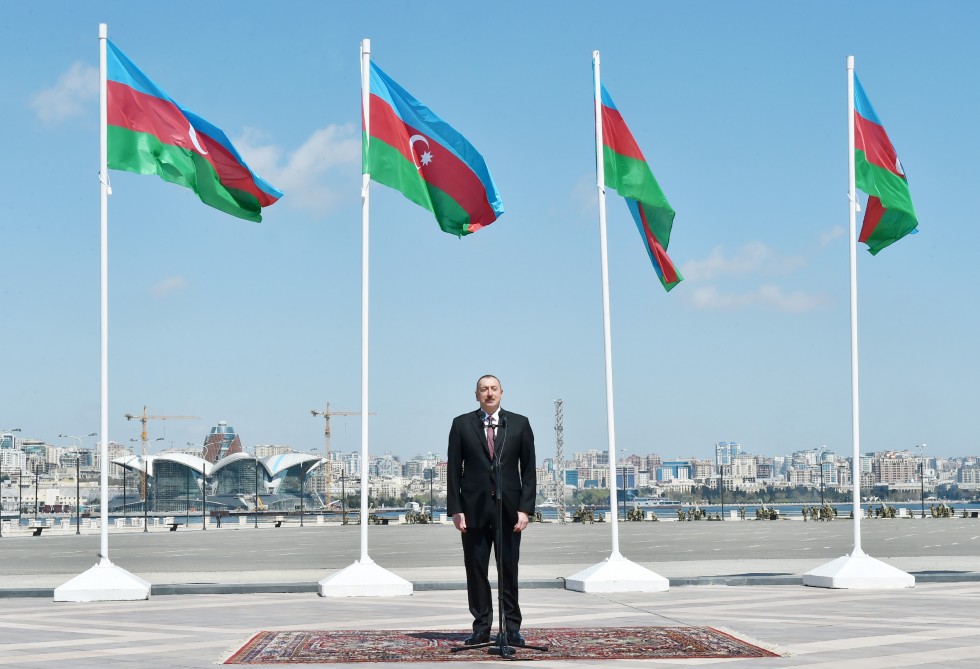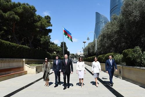 Azərbaycan Respublikasının Prezidenti İlham Əliyev və ailə üzvləri Dövlət Bayrağı Meydanında olublar.