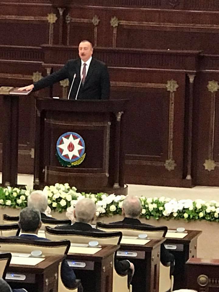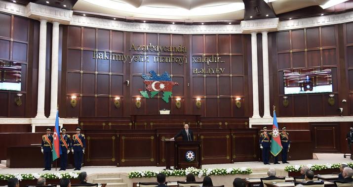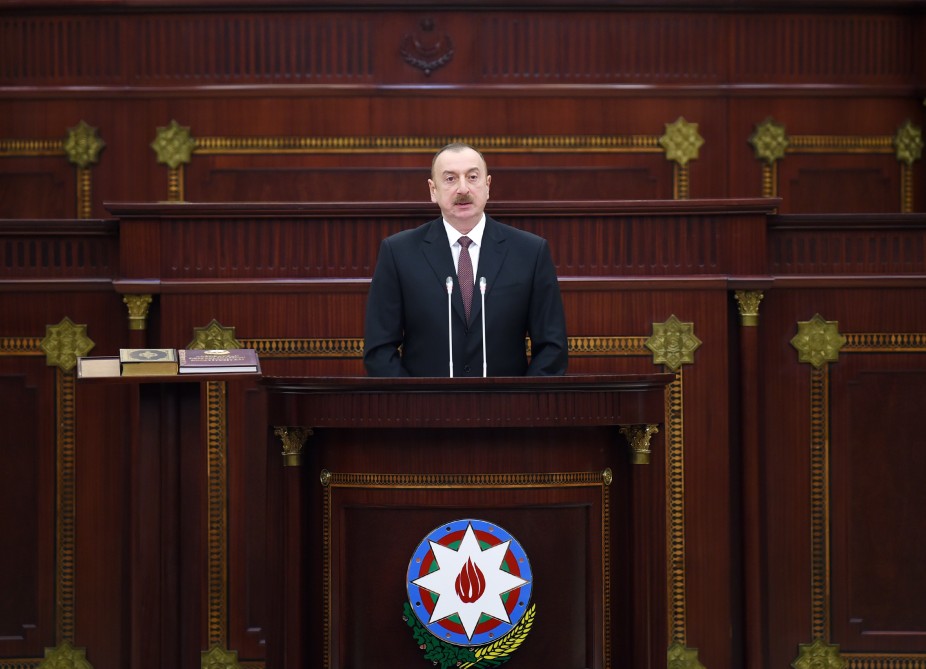 Azərbaycan Respublikasının Prezidenti İlham Əliyev andiçmə mərasimində nitq söyləyib.