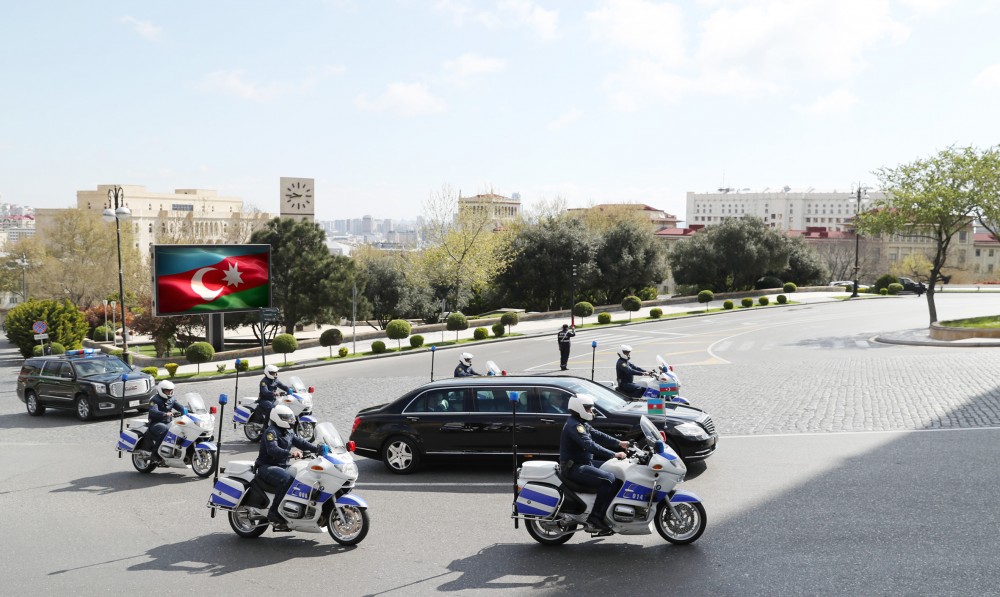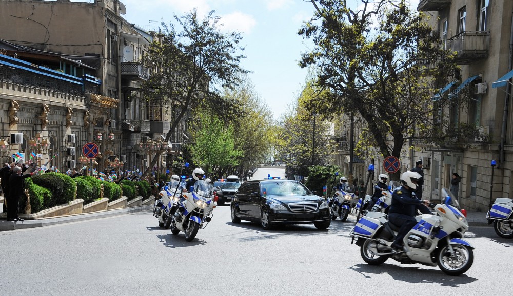Prezident İlham Əliyevi müşayiət edən fəxri kortej Azərbaycan Respublikası Prezidentinin andiçmə mərasiminin keçirildiyi Milli Məclisə yola düşüb.