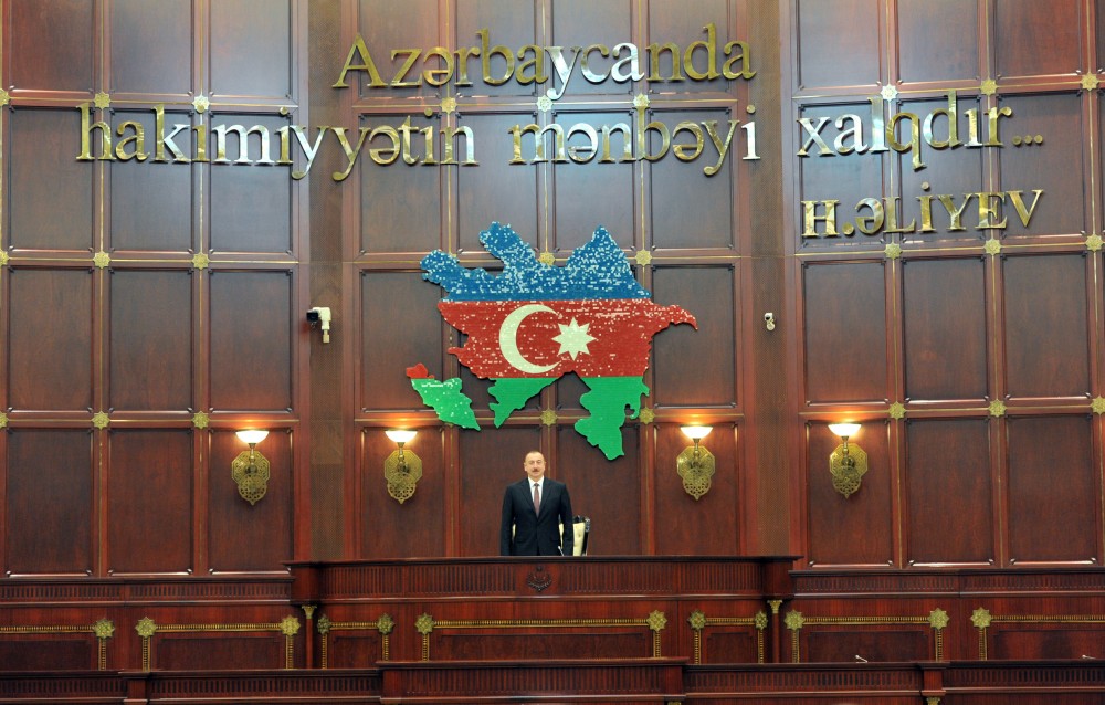 Son 15 il ərzində bu yolla gedərək biz böyük uğurlara imza atdıq, Azərbaycan xalqı təhlükəsizlik, sabitlik şəraitində yaşamışdır. Bu 15 il ərzində dünyanın müxtəlif bölgələrində, bizim bölgəmizdə, Avropada çox təhlükəli proseslər baş verirdi: qanlı toqquşmalar, müharibələr, vətəndaş müharibələri, dövlət çevrilişləri. Yəni, təhlükəsizlik baxımından son 15 il çox gərgin keçmişdir. Azərbaycanda isə xalqımız təhlükəsizlik şəraitində yaşamışdır. Biz daxili risklərin hamısını aradan qaldırdıq, xarici risklərdən isə özümüzü qoruya bilmişik, bu gün də qoruyuruq, əminəm ki, bundan sonra da qoruyacağıq. Azərbaycan xalqı bu 15 il ərzində sabitlik şəraitində yaşamışdır. Bu da inkişafımız üçün əsas şərtdir. Biz görürük ki, sabitlik pozulanda inkişafdan söhbət gedə bilməz. Sabitlik pozulanda xarici müdaxilə baş verir, ölkələr idarəolunmaz vəziyyətə düşür, qardaş qanı tökülür və ölkələrin gələcəyi böyük sual altına düşür. Azərbaycanda sabitliyin təminatçısı Azərbaycan xalqıdır və bizim siyasətimizdir. Ona görə xalq-iqtidar birliyi bizim uğurlarımızın əsas şərtidir. Azərbaycan bu gün dünya miqyasında sabitlik məkanı, sabitlik adası kimi tanınır və bu, bizim böyük nailiyyətimizdir.