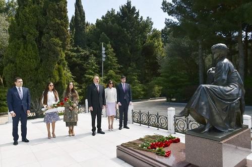 Sonra Prezident İlham Əliyev və ailə üzvləri görkəmli oftalmoloq-alim, akademik Zərifə xanım Əliyevanın məzarını ziyarət etdilər və üzərinə gül dəstələri qoyublar.