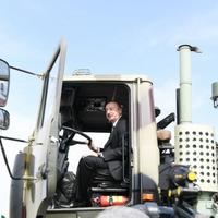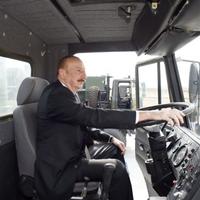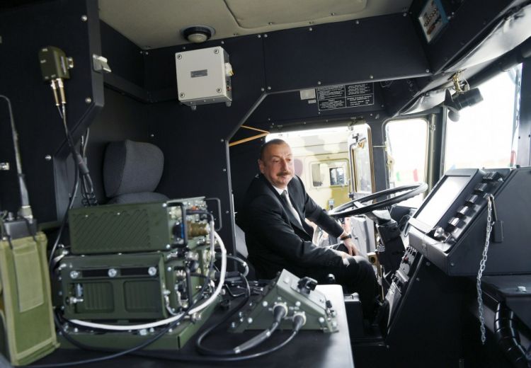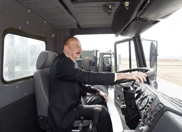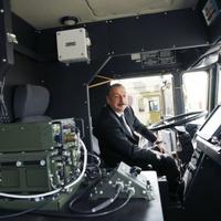 Dövlət başçısı döyüş texnikası parkında hərbi texnikaya baxıb.