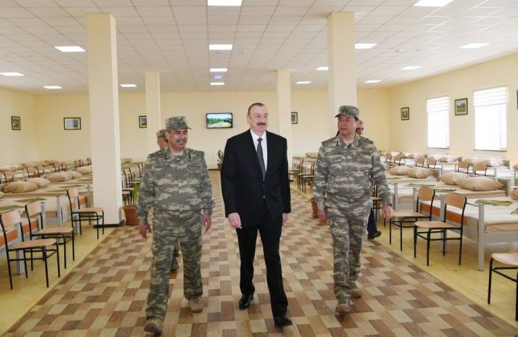 Dövlət başçısı hərbi hissənin əsgər yataqxanasında yaradılan şəraitlə də tanış olub.