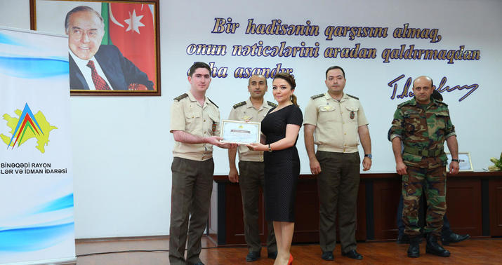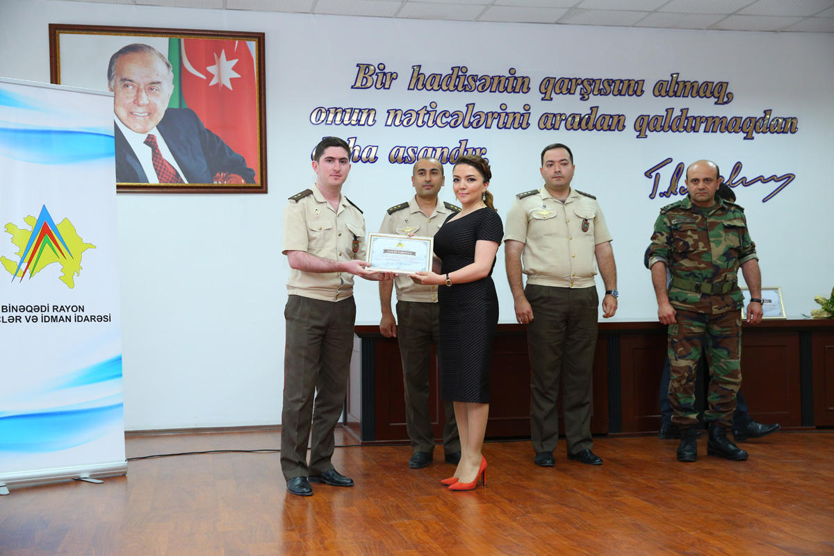 Sonda ordu sıralarında xidmətdə fərqlənən bir qrup zabit və əsgər Binəqədi RİH və Binəqədi rayon Gənclər və İdman İdarəsinin Fəxri fərmanları ilə təltif edilib. Tədbir tanınmış sənət nümayəndələrinin ifasında musiqili proqramla davam etdirilib.