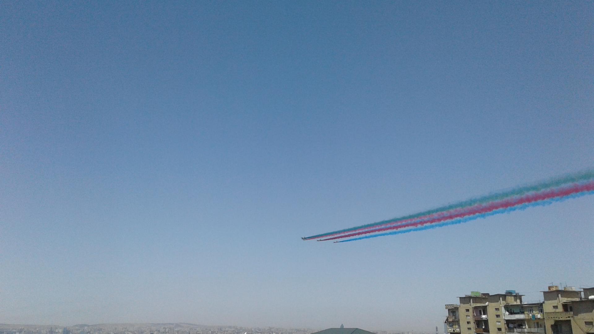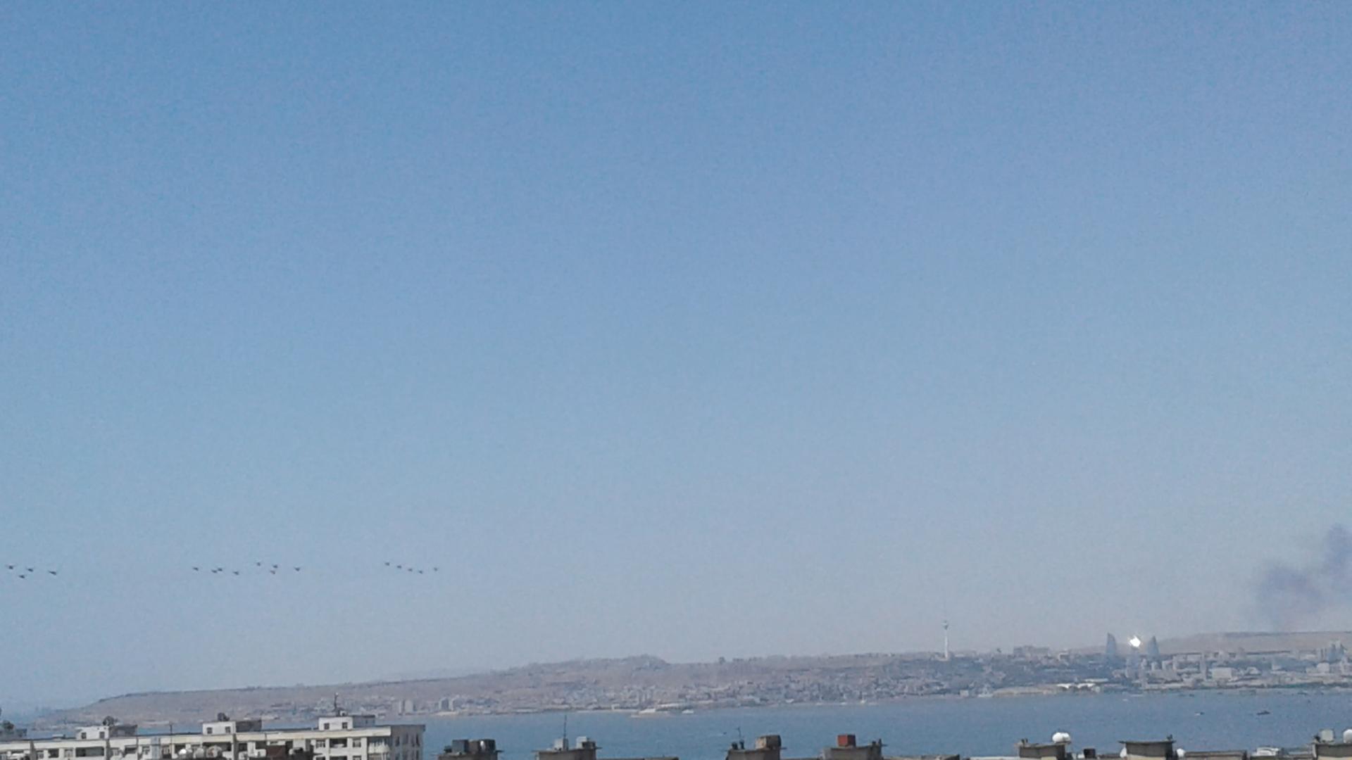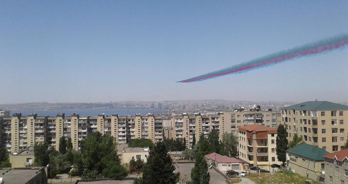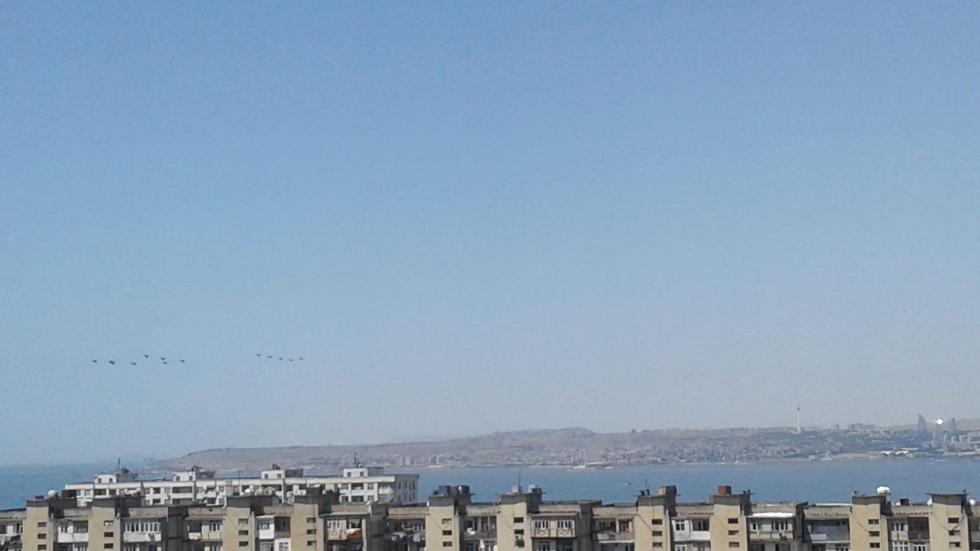Azərbaycan Silahlı Qüvvələrinin 100 illik yubileyi ilə əlaqədar bayram tədbirlərinə hazırlıq məqsədilə Hərbi Hava Qüvvələrinin aviasiya vasitələri Bakı buxtası üzərində uçuşlar keçirir.