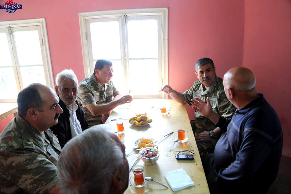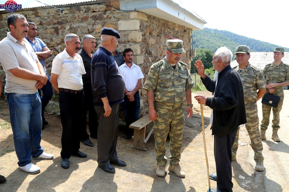 Sonra nazir sərhədyanı ucqar dağ kəndlərindən birində yerli sakinlərlə görüşərək, yaşayış məntəqələrimizin müdafiəsinin və əhalinin təhlükəsizliyinin təmin edilməsi barədə söhbətlər aparıb.Müdafiə Nazirliyinin rəhbərliyi ilə söhbət zamanı ucqar dağ kəndinə rahat asfalt yolunun salınması, qaz və işıq xətlərinin çəkilməsinə görə öz məmnunluqlarını ifadə edən kənd sakinləri Müdafiə nazirindən onların minnətdarlığını ölkə rəhbərliyinə, cənab Ali Baş Komandana çatdırmasını xahiş ediblər.