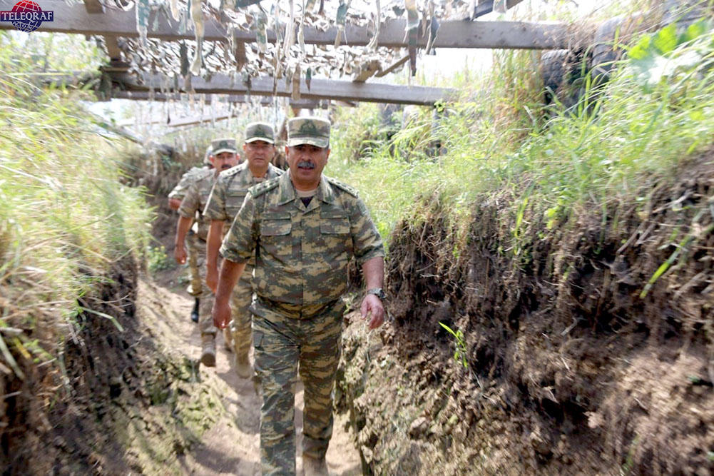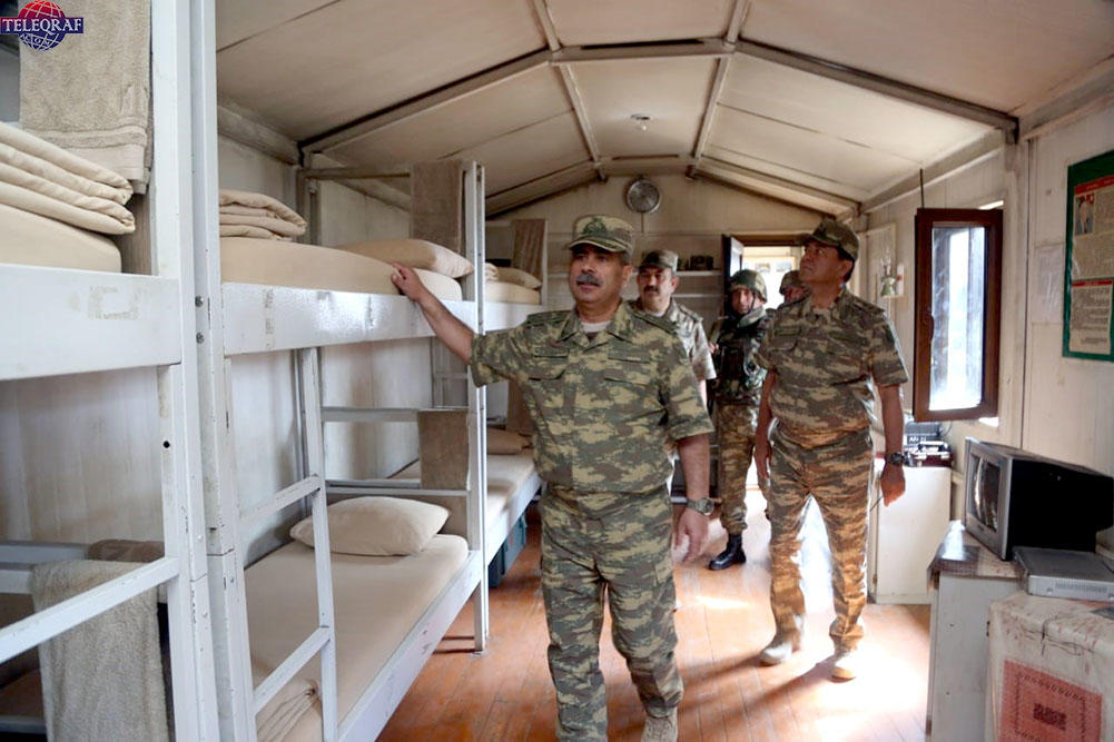 Nazirliyin mətbuat xidmətin Teleqraf.com-a verilən məlumata görə, çətin iqlim şəraitində və dağlıq ərazidə düşmənlə qarşıdurma xəttindəki bölmələrdə olarkən əməliyyat şəraiti barədə məruzəni dinləyən Müdafiə naziri üzbəüz yerləşən düşmən mövqelərini müşahidə edib.Hərbi qulluqçuların döyüş və mənəvi-psixoloji hazırlığı, onların sosial-məişət şəraiti ilə maraqlanan Müdafiə naziri qarşıdan gələn qış dövrünə zəruri hazırlıq işlərinin görülməsi barədə vəzifəli şəxslərə konkret tapşırıqlar verib.Bildirilib ki, ön xətdə yerləşən bölmələr içməli su, istilik sistemləri, yuyunma otaqları, isti yataq və digər lazımi qış ləvazimatları ilə tam təmin olunub.