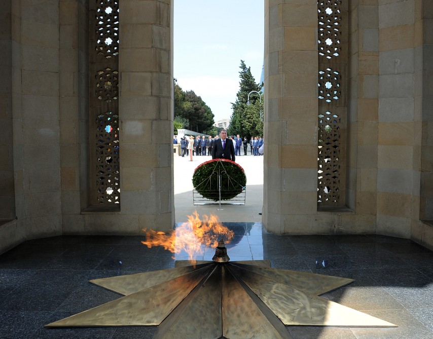 Azərbaycan Respublikasında rəsmi səfərdə olan Tacikistan Respublikasının Prezidenti Emoməli Rəhmon avqustun 10-da Fəxri xiyabana gələrək xalqımızın ümummilli lideri, müasir müstəqil Azərbaycan dövlətinin memarı və qurucusu Heydər Əliyevin xatirəsini ehtiramla yad edib, məzarı önünə əklil qoyub.