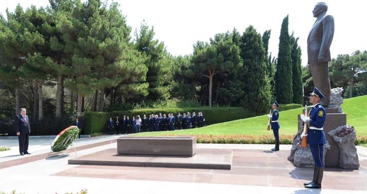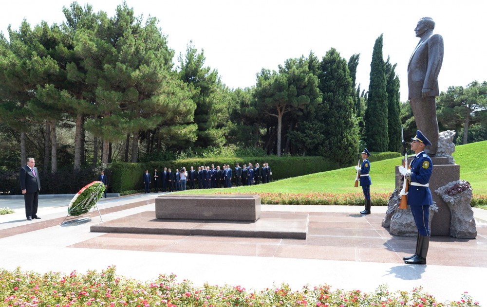 Ali qonaq görkəmli dövlət xadimi Əziz Əliyevin və tanınmış həkim, alim Tamerlan Əliyevin məzarlarının üzərinə də gül dəstələri qoyub.