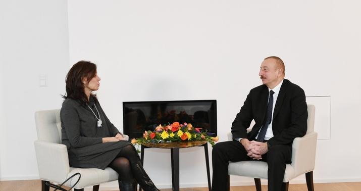 Azərbaycan Respublikasının Prezidenti İlham Əliyev yanvarın 22-də Davosda “CISCO” şirkətinin icraçı vitse-prezidenti və satış rəhbəri xanım Gerri Elliott ilə görüşüb.