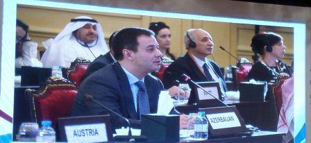 Azərbaycan Prezidenti İlham Əliyevin təşəbbüsü ilə keçirilən Dünya Mədəniyyətlərarası Forumu çərçivəsində, Forumun əsas partnyoru olan BMT Sivilizasıyalar Alyansının ölkəmizin dəstəyi ilə 20-dən artıq tədbirin keçirilməsini vurğulayan natiq bunun Azərbaycanın SA-nın inkişafına dəstəyinin nümunəsi olduğunu qeyd edib.