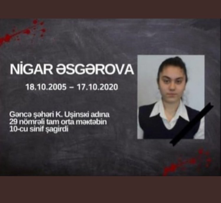 “Dinc sakinlərin, uşaqların öldürülməsi Ermənistan silahlı qüvvələrinin standart təcrübəsidir. Nigar doğum günündən bir gün əvvəl Ermənistanın Gəncə şəhərinə raket hücumu nəticəsində öldürülüb”, - o qeyd edib.