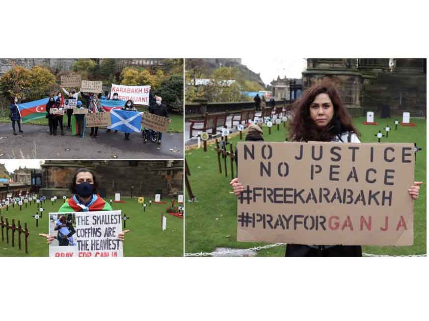 Diasporla İş üzrə Dövlət Komitəsindən Teleqraf.com-a verilən məlumata görə, Edinburq şəhərində yerləşən Scott abidəsinin önündə toplaşan aksiya iştirakçıları Ermənistanın işğalçı siyasətini və Ermənistan silahlı qüvvəllərinin Gəncə şəhərində, eləcə də digər şəhər və rayonlarda mülki əhaliyə qarşı törətdiyi terroru pisləyiblər.
