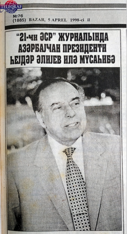 Azərbaycan Respublikasının Prezidenti Heydər Əliyev 1998-ci ildə “21-ci əsr” jurnalına müsahibə verib. Adətən, müsahibələrdə Heydər Əliyevdən proseslərlə bağlı siyasi mövqeyi soruşulur. Bu qeyri-adi müsahibədə öz əksini tapan mövzular siyasətdən çox uzaqdır.
