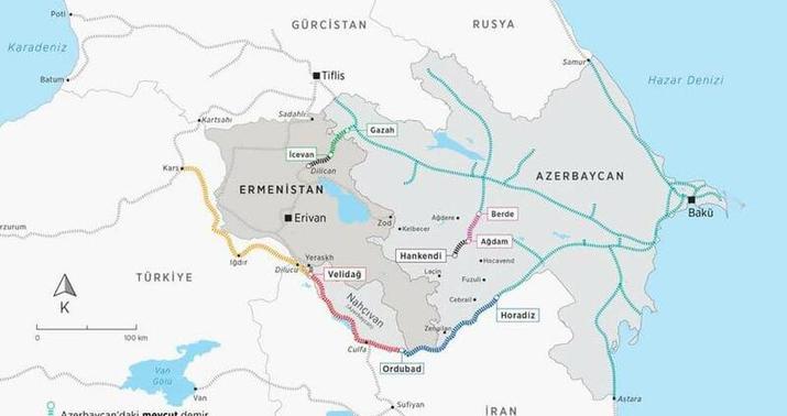 - Horadizdən Ordubada 166 km-lik yeni dəmiryolu. Onun 43 km hissəsi Ermənistandan keçəcək.