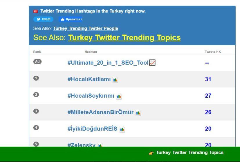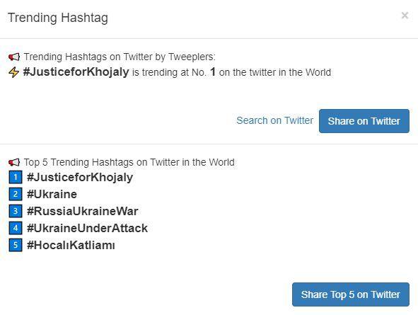 Türkiyə trendində isə #HocalıKatliamı 1-ci yer, #HocalıSoykırımı 2-ci yerdə qərarlaşıb.