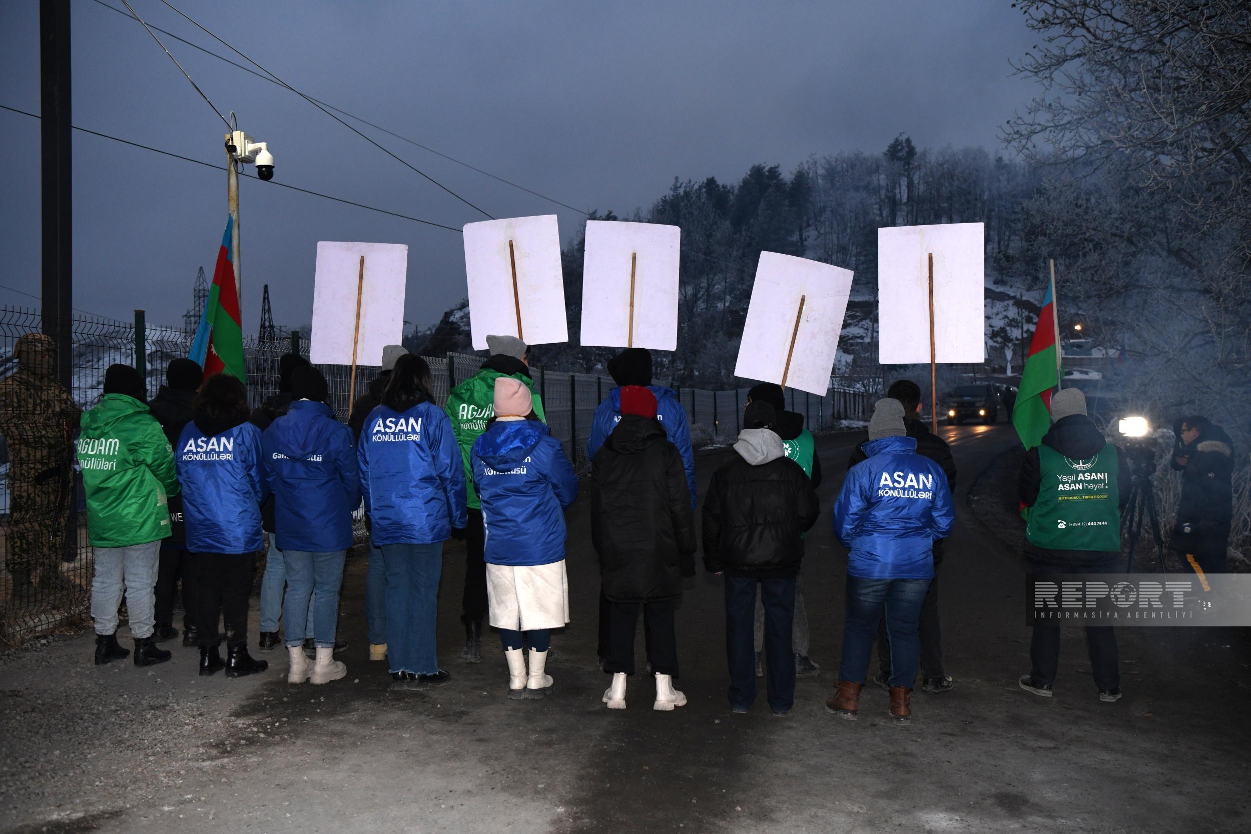 Hazırda havanın soyuq və şaxtalı olmasına baxmayaraq, Azərbaycanın Qarabağ iqtisadi rayonunda faydalı qazıntı yataqlarının qanunsuz istismarına qarşı Xankəndi-Laçın yolunda keçirilən etiraz aksiyası axşam saatlarında da davam edir.