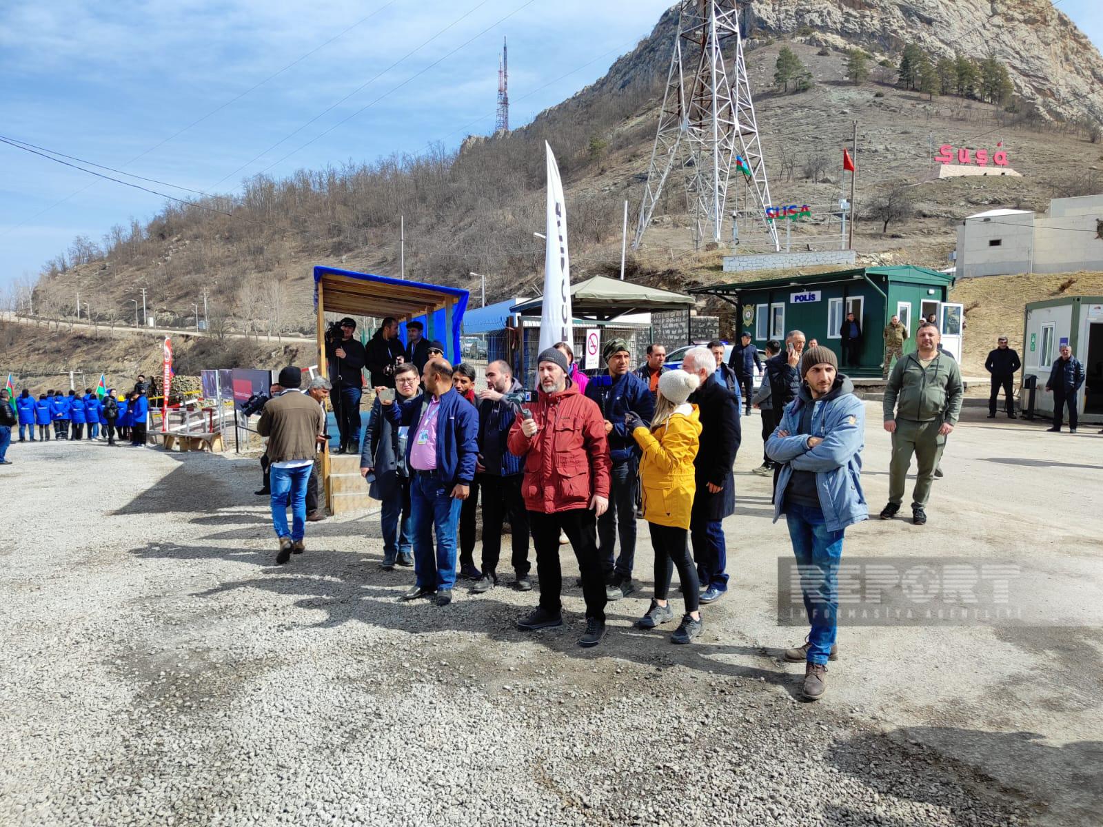 Azərbaycanın Qarabağ iqtisadi rayonunda faydalı qazıntı yataqlarının qanunsuz istismarına qarşı Xankəndi-Laçın yolunda keçirilən etiraz aksiyası yerinə bir qrup xarici media orqanının əməkdaşı gəliblər.