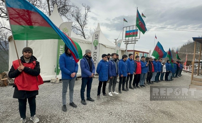 Eyni zamanda ekofəallar yolun hər iki tərəfində, hərəkətə maneə törətmədən üzərində Azərbaycan, rus və ingilis dillərində yazılmış plakatlar qaldırıb, şüarlar səsləndirirlər.