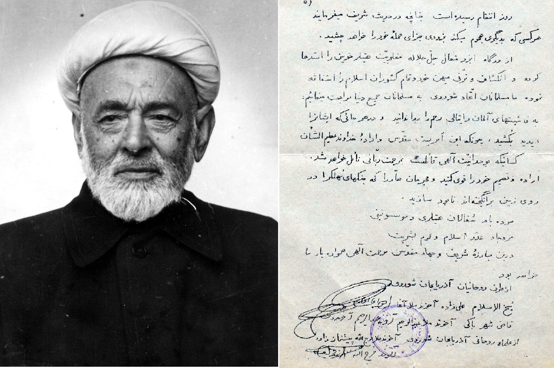 Türkiyənin Rzaiyyə (Urmiya) konsulluğu 8 yanvar 1942-ci ildə Xariciyyə Vəkalətinə belə raport göndərib: “Şura Azərbaycanı ruhani heyətindən Bakıda Şeyxülislam Əlizadə Axund Molla Ağa və qazı Axund Molla Əbdürrəhim və üləmadan Pişnamazzadə Molla imzaları ilə ümummüsəlmanlara xitabən yazılıb Bakıda nəşr edilən və burada paylanılan bəyannamənin türkcəyə çevrilmiş bir nüsxəsi əlavədə təqdim edilmişdir”.