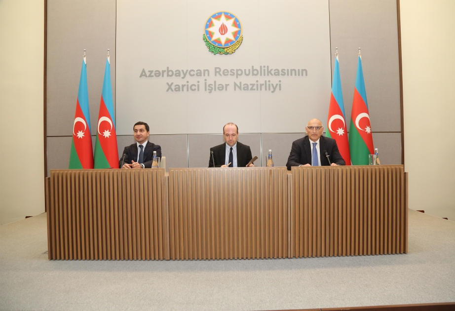 Xəbər verdiyimiz kimi, bu gün Azərbaycan Xarici İşlər Nazirliyində (XİN) nazir Ceyhun Bayramov, Azərbaycan Prezidentinin köməkçisi - Azərbaycan Prezidentinin Administrasiyasının Xarici siyasət məsələləri şöbəsinin müdiri Hikmət Hacıyev və Azərbaycan Prezidentinin xüsusi tapşırıqlar üzrə nümayəndəsi Elçin Əmirbəyovun iştirakı ilə ölkəmizdə akkreditə olunmuş diplomatik korpus üçün brifinq keçirilib.