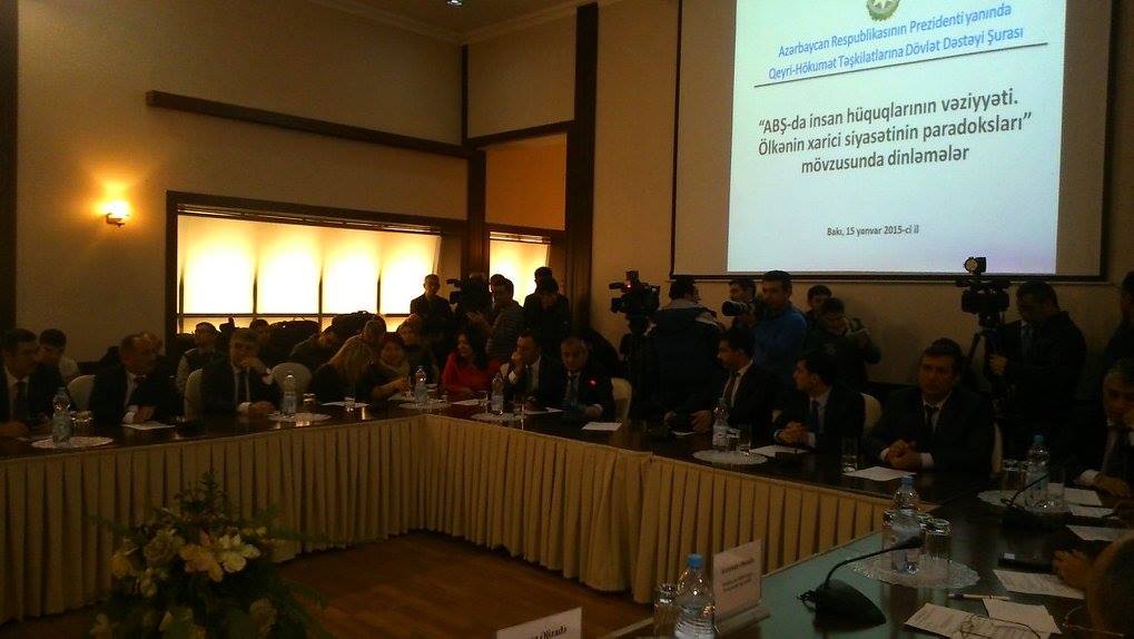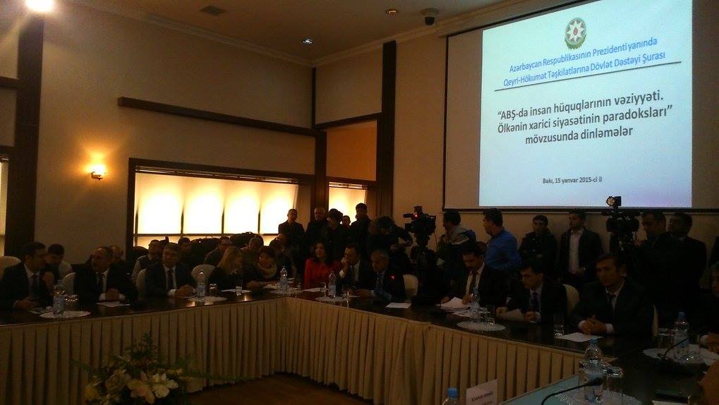 Teleqraf.com-un məlumatına görə, tədbirdə çıxış edən QHT-lərə Dövlət Dəstəyi Şurasının sədri, millət vəkili Azay Quliyev bildirib ki, ABŞ-dakı qurumlar Azərbaycana qarşı bir sıra addımlar atır. Onun sözlərinə görə, bu Azərbaycanda narahatlıq yaradır: “QHT-lərin müraciətləri əsasında belə bir dinləmələr keçirməyə qərar verdik. Öz ölkəsində insan haqlarının pozan, Quantanamo kimi həbsxanalar saxlayan ABŞ nə üçün Azərbaycanı hədəf seçib? Azərbaycan starteji müttəfiq kimi bütün öhdəlikləri yerinə yetirib. Belə olan halda geosiyasi tənqidlərin olmasını qəbul edə bilmərik. Ermənistan Avrasiya İttifaqına qəbullla bağlı geosiyasi qərar verdi. Amma Qərbdə bununla bağlı heç bir reaksiya olmadı”.