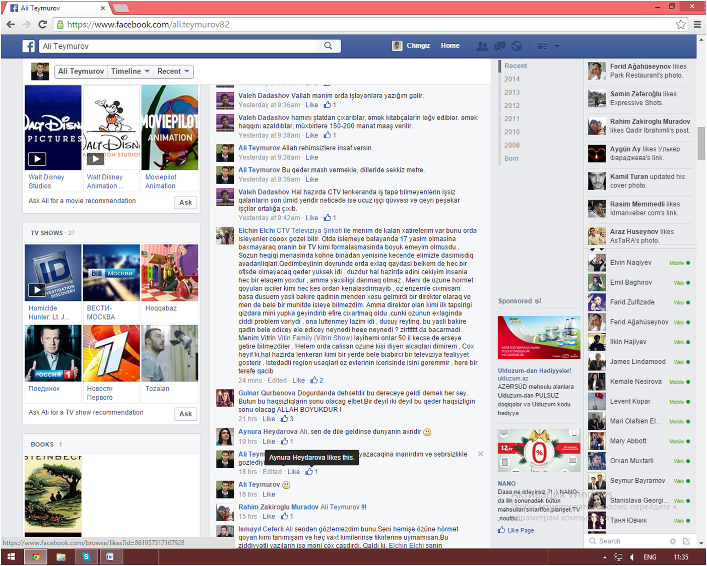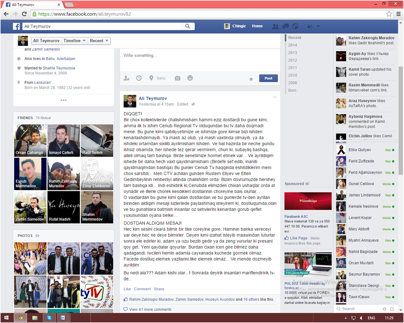 Gülbəniz Mayılovanın nümayəndəsi Ədalət Səfərov Teleqraf.com-a bildirib ki, 18 dekabr 2014-cü il tarixdə “Facebook” sosial şəbəkəsində Əli Teymurovun şəxsi profilində “Cənub” regional televiziyasında müxtəlif vəzifələrdə çalışmış, işin öhdəsindən gələ bilməyərək işdən azad olunan Teymurov Əli Əkrəm oğlu, Şahverdiyev Elçin Rasim oğlu, Əhmədova Aynur Əhməd qızı və Yusubov Rəşad Yusub oğlu tərəfindən CTV-nin direktoru Gülbəniz Mayılovanın və ümumilikdə televiziya əməkdaşlarının şəxsiyyətini, şərəf və ləyaqətini təhqir ediblər.