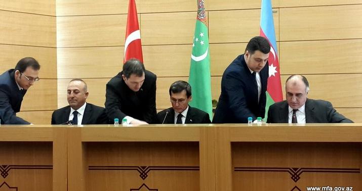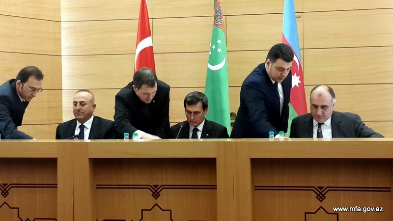Bu gün Aşqabadda Azərbaycanın xarici işlər naziri Elmar Məmmədyarov, Türkmənistanın xarici işlər naziri Raşid Meredov və Türkiyə xarici işlər naziri Mevlüt Çavuşoğlunun sayca ikinci üçtərəfli görüşü keçirilib.