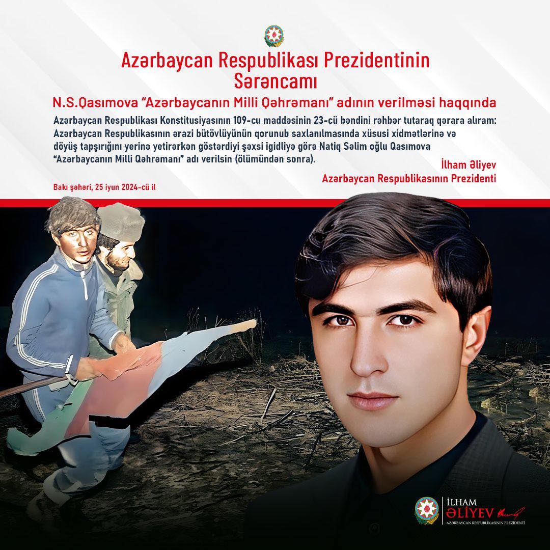 Prezident İlham Əliyev Natiq Qasımovla bağlı imzaladığı Sərəncam haqda paylaşım edib.