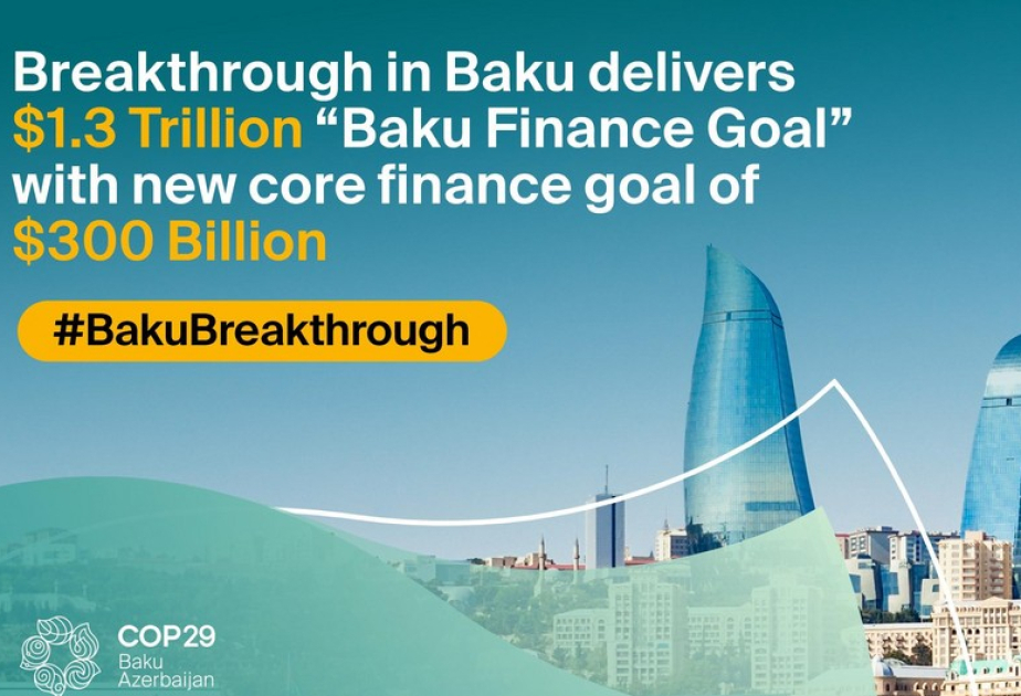 Bu gün Azərbaycanın COP29 Sədrliyi inkişaf etməkdə olan ölkələrə hər il 1,3 trilyon dollarlıq iqlim maliyyəsini təmin etmək üçün yeni öhdəlik olan Bakı Maliyyə Məqsədi (Baku Finance Goal) razılaşmasını elan edib.
