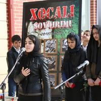 Tədbirdə Xocalı İcra Hakimiyyətinin məsul işçisi Vaqif Ağayev, sakinlərdən Zülfü Quliyev, Səmayə Mirzəyeva və başqaları çıxış edərək, möhtərəm Prezidentimiz cənab İlham Əliyevin apardığı uğurlu siyasət nəticəsində Dağlıq Qarabağ probleminin sülh yolu ilə həll olunacağı, işğal olunan torpaqlarımızın azad ediləcəyi günün uzaqda olmadığını, tarixçilərin, tədqiqatçıların, gənclərin üzərinə bu istiqamətdə məsuliyyətli və vacib vəzifələrin düşdüyünü bildiriblər. Xocalı qətliamının dəhşətlərindən bəhs edən ədəbi-bədii kompozisiya göstərilib.