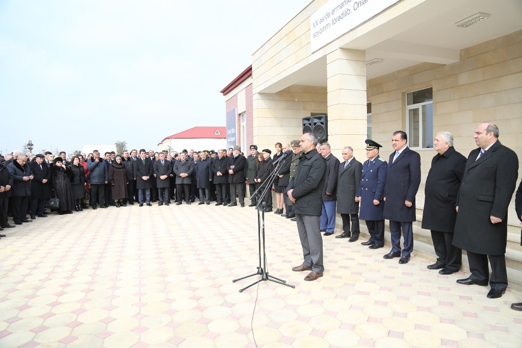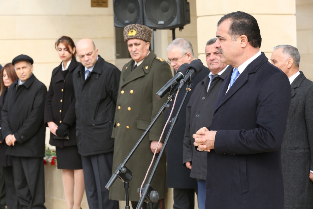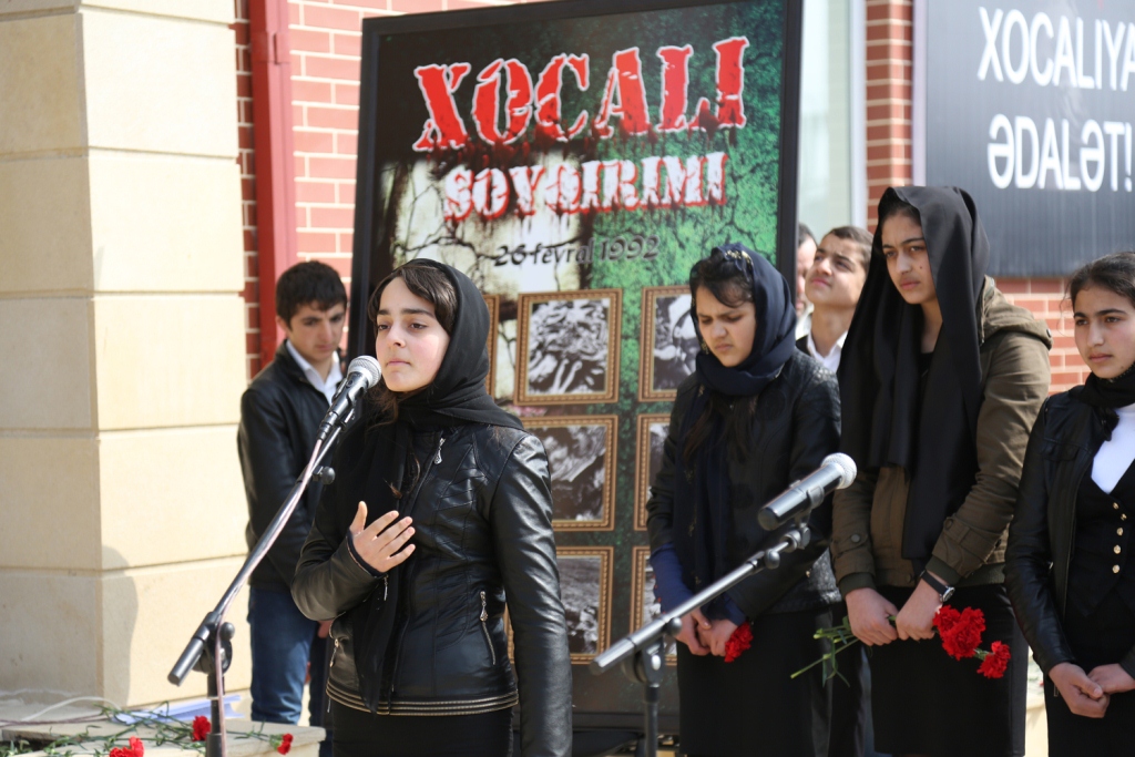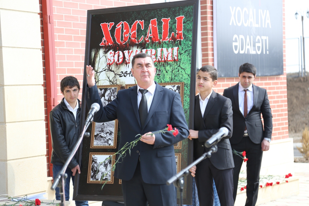 Şəhər İcra Hakimiyyətinin başçısı Elmar Vəliyev çıxış edərək bildirib ki, amansızlığına, qəddarlığına görə bəşər tarixinə qanlı iz salmış, təkcə Azərbaycan xalqına deyil, bütün insanlığa qarşı yönəlmiş Xocalı qətliamından 23 il keçir. Fevralın 25-dən 26-na keçən gecə Ermənistan hərbi birləşmələrinin MDB-nin Xankəndində yerləşən 366-cı alayının hərbiçiləri tərəfindən törədilmiş Xocalı soyqırımı və ermənilərin məkrli siyasətinin qanlı cinayətləri yaddaşımızdan heç vaxt çıxmayacaq. Bu kütləvi qırğında yüzlərlə insan vəhşicəsinə qətlə yetirilib, yandırılıb və girov götürülüb. Tədbir iştirakçıları Xocalı qurbanlarının əziz xatirəsini bir dəqiqəlik sükutla yad ediblər.