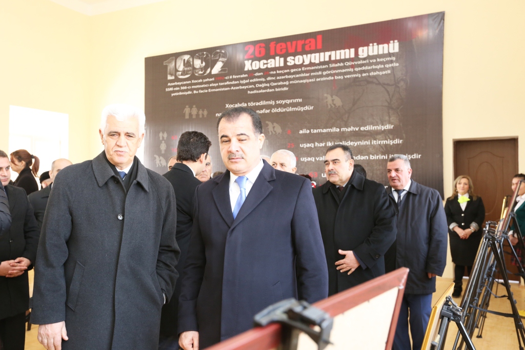 İcra Başçısı Elmar Vəliyev sözünə davam edərək bildirib ki, Ulu Öndər Heydər Əliyev hakimiyyətə qayıtdıqdan sonra bu qanlı faciəyə ilk dəfə olaraq, hüquqi-siyasi qiymət verilib və 1994-cü ildə ümummilli liderin təşəbbüsü ilə Azərbaycan parlamenti 26 fevralı Xocalı soyqırımı günü kimi qəbul edib.