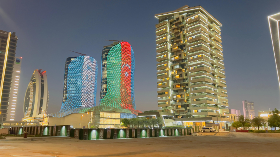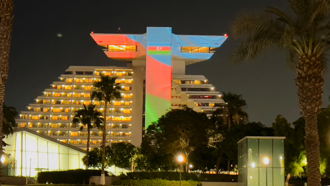 Teleqraf xəbər verir ki, “Sheraton Grand Doha” və “Century Marina” hotelləri, eləcə də “Hospital Doha” binaları üçrəngli bayrağımızın rənglərinə boyanıb.