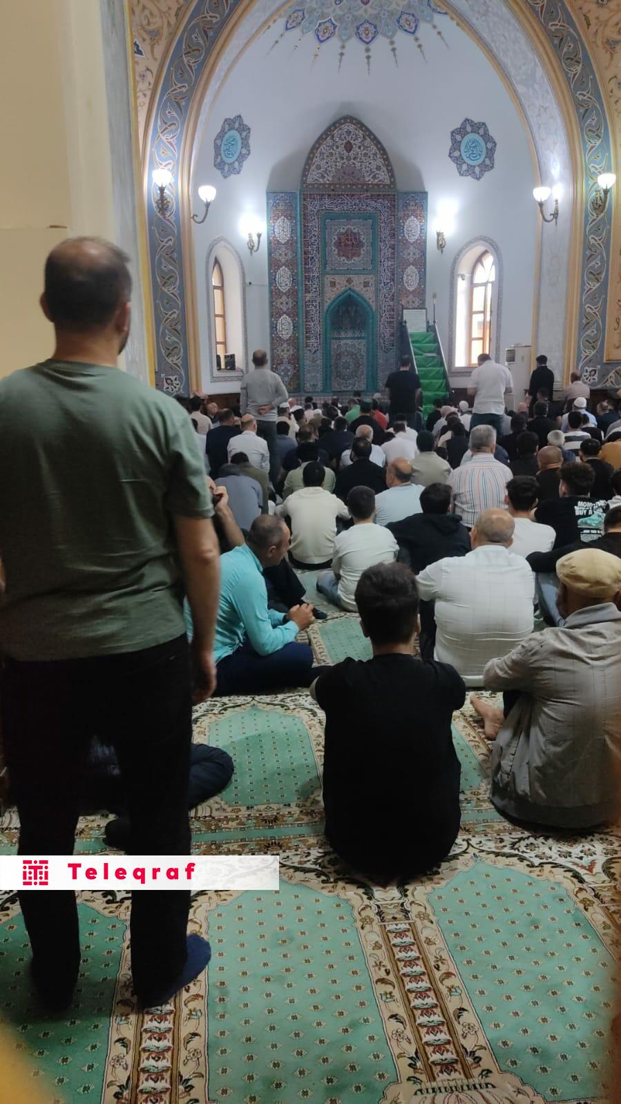 Daha sonra namaza qatılan insanlar bir-birini bayram münasibətlə təbrik ediblər.