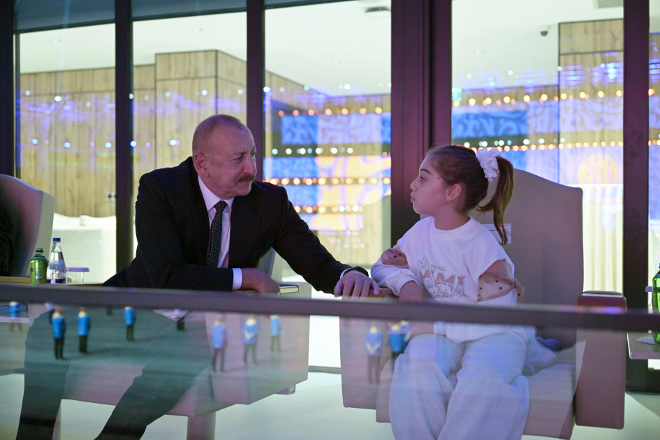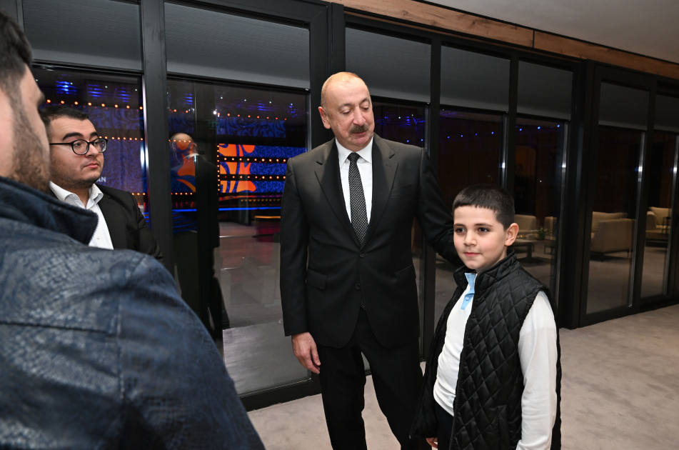 Prezident İlham Əliyev görüş zamanı şəhid övladları ilə xüsusi olaraq maraqlanıb və Nilay adlı uşaqla səmimi salamlaşıb.